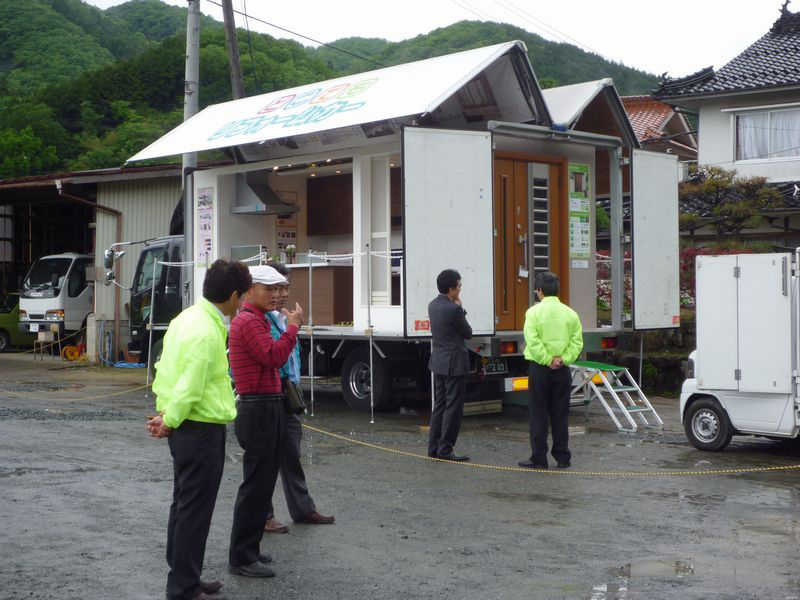 移動展示車にキッチンやバスルーム、トイレなどが積んであり、皆さんに見て頂きました