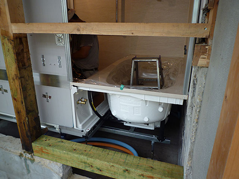 保温性に優れたシステムバスは、4時間で2度だけしか冷めません。風呂の縁に立てかけてある専用風呂蓋によって保温性能が発揮されます。
